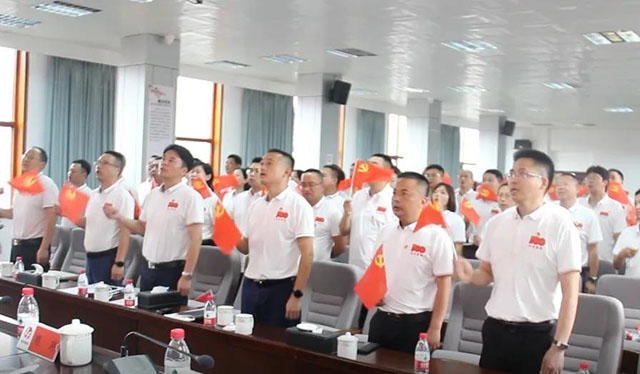 隨后,全體黨員重溫入黨誓詞。集團黨委書記、董事長張伯鋒領(lǐng)誓,大家舉起右手莊嚴(yán)宣誓,再次深深感受作為共產(chǎn)黨員的責(zé)任、使命與擔(dān)當(dāng)。