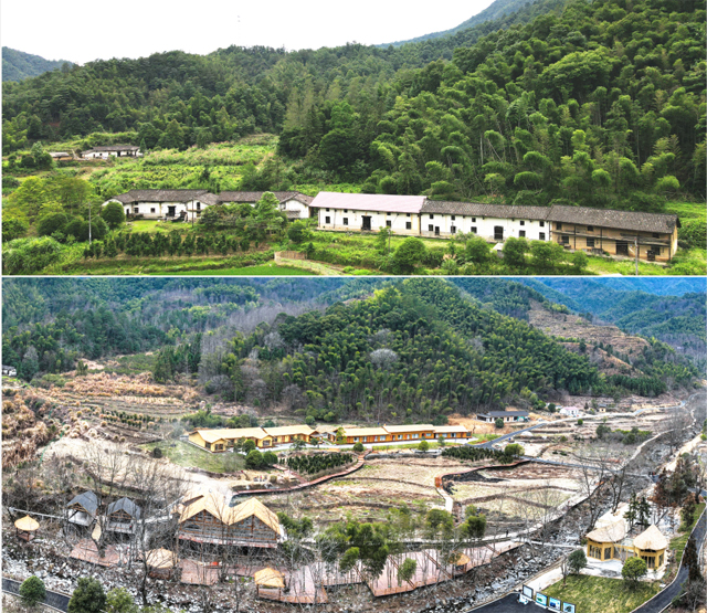 通過引進、建設(shè)高端民宿項目,使這個原本偏遠、人煙稀少的山中村落(上圖),成為一個全新的民宿村落(下圖)。