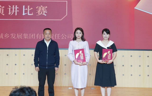 瀏發(fā)集團黨委副書記、總經(jīng)理熊瑋為二等獎獲獎選手吳迎、汪娜娜頒獎。