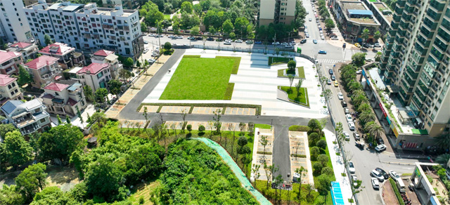 翠園公園東入口廣場位于長嶺路與合燕沖路相交處,改造過程中,將原本遺留的破舊工棚進行拆除,平整場地后,新建了一個約6000平方米的休閑廣場,同時配建了綜合型停車,包含76個停車位、預留了24個充電樁停車位,完善了周邊的綠化和亮化設(shè)施,不僅美化了城市環(huán)境,更為群眾提供了便利。