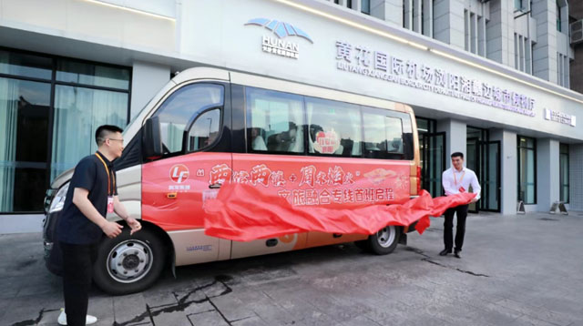 “首班啟程!”5月17日下午6時(shí)許,伴隨著熱烈的歡呼聲,覆蓋專線接駁車(chē)車(chē)身的紅色幕布滑落,“兩館兩鎮(zhèn)?周末焰火”八個(gè)大字閃耀亮相,瀏發(fā)集團(tuán)精心打造的“紅色+焰火”文旅融合專線正式開(kāi)啟。