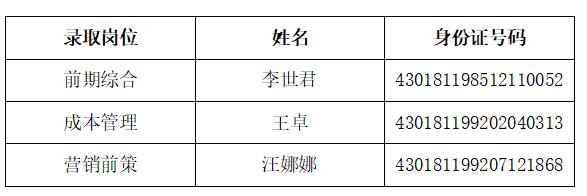 湖南省瀏陽市恒遠建設開發(fā)有限公司2022年公開招聘合同制工作人員資格審查、筆試、面試、體檢、綜合考察工作均已經(jīng)結(jié)束,現(xiàn)將擬錄用人員名單公示如下: