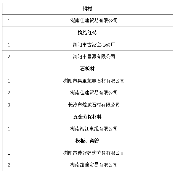 湖南中瀚項(xiàng)目咨詢管理有限公司受瀏陽市五環(huán)建設(shè)開發(fā)有限公司委托,對瀏陽市五環(huán)建設(shè)開發(fā)有限公司材料供應(yīng)商庫進(jìn)行公開征集。評審工作于2022年5月16日在瀏陽市城市建設(shè)集團(tuán)有限公司會議室舉行,評審委員會按照征集文件確定的評審原則和辦法,經(jīng)集體評審,向征集人推薦入庫候選人名單如下(排名不分先后):