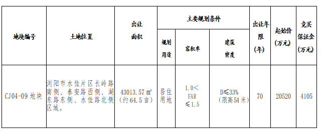 注:地塊指標(biāo)以瀏陽市自然資源局批準(zhǔn)的規(guī)劃圖則為準(zhǔn)