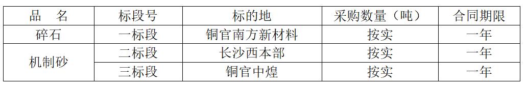 因采購(gòu)需要,瀏陽(yáng)市瀏發(fā)礦業(yè)發(fā)展有限公司(招標(biāo)人)委托瀏陽(yáng)市瀏招項(xiàng)目管理有限公司(招標(biāo)代理機(jī)構(gòu))通過(guò)瀏發(fā)礦業(yè)砂石供應(yīng)庫(kù)、瀏發(fā)集團(tuán)官網(wǎng)和《瀏陽(yáng)日?qǐng)?bào)》公開(kāi)招標(biāo)采購(gòu)砂石。此次采購(gòu)的砂石送貨攪拌站為湖南長(zhǎng)沙西南方新材料科技有限公司(以下簡(jiǎn)稱“長(zhǎng)沙西本部”)、長(zhǎng)沙銅官南方新材料科技有限公司(以下簡(jiǎn)稱“銅官南方新材”)、長(zhǎng)沙銅官南方新材料科技有限公司中煌分公司(以下簡(jiǎn)稱“銅官中煌”)。