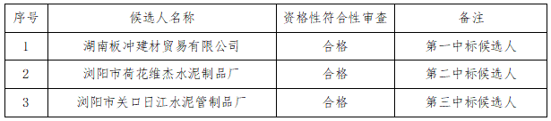 瀏陽市五環(huán)建設(shè)開發(fā)有限公司對(duì)砼管及預(yù)制井進(jìn)行公開采購,現(xiàn)將采購結(jié)果公告如下: