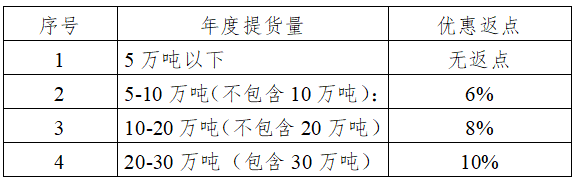 4、采購(gòu)商簽訂返利政策需根據(jù)合同年度采購(gòu)數(shù)量,按2元/噸的標(biāo)準(zhǔn)繳納合同保證金。