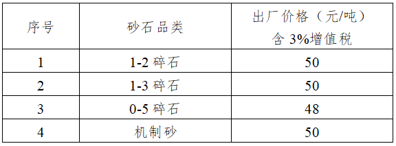 根據(jù)市場(chǎng)行情結(jié)合生產(chǎn)成本,現(xiàn)將椒花水庫(kù)生產(chǎn)線砂石銷售價(jià)格標(biāo)準(zhǔn)和優(yōu)惠政策公告如下: