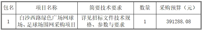 一、采購(gòu)項(xiàng)目名稱:白沙西路綠色廣場(chǎng)網(wǎng)球場(chǎng)、足球場(chǎng)圍網(wǎng)采購(gòu)項(xiàng)目