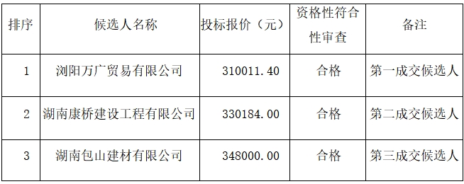 三、中標(biāo)(成交)候選(前三名)評審結(jié)果