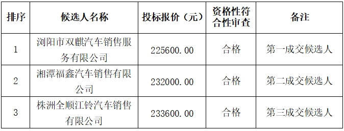 受湖南株樹橋城市運(yùn)營(yíng)服務(wù)有限責(zé)任公司的委托,湖南潤(rùn)平項(xiàng)目管理有限公司對(duì)皮卡車、窄體雙排欄板車采購進(jìn)行招標(biāo)?,F(xiàn)將采購結(jié)果公告如下: