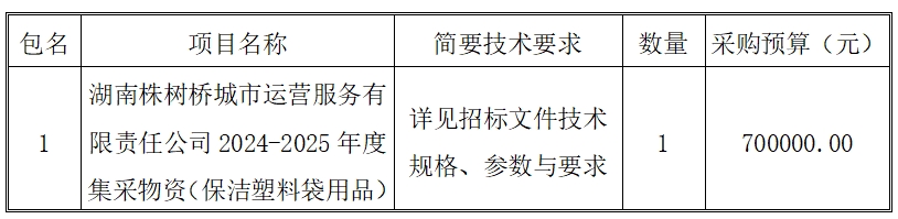 湖南株樹橋城市運(yùn)營服務(wù)有限責(zé)任公司2024-2025年度集采物資(保潔塑料袋用品)