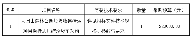 大圍山森林公園垃圾收集清運(yùn)項(xiàng)目后掛式壓縮垃圾車采購(gòu)