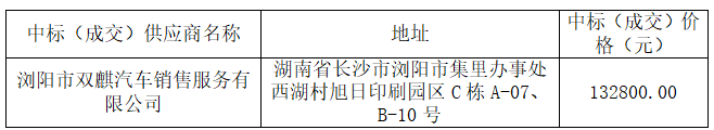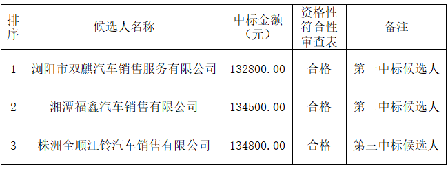 受 湖南株樹橋城市運(yùn)營(yíng)服務(wù)有限責(zé)任公司 的委托,本代理機(jī)構(gòu)對(duì) 皮卡車采購(gòu)(第二次) 進(jìn)行公開招標(biāo)采購(gòu),現(xiàn)將采購(gòu)結(jié)果公告如下: