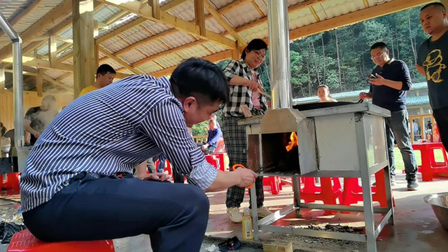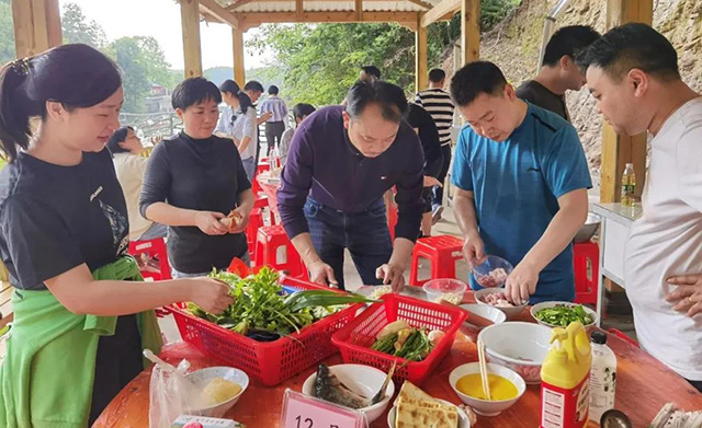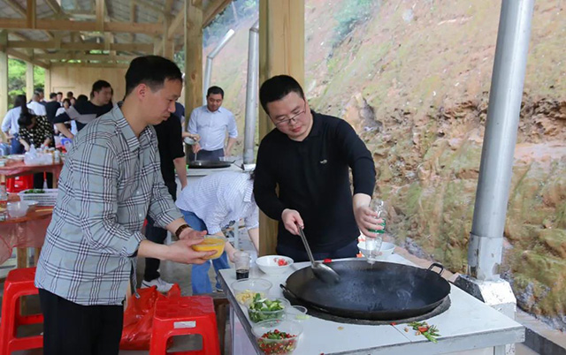 各隊(duì)分工明確,密切配合,洗菜、切菜、配菜、打水、生火、掌勺……各種聲音匯合成美妙的“野炊交響曲”。