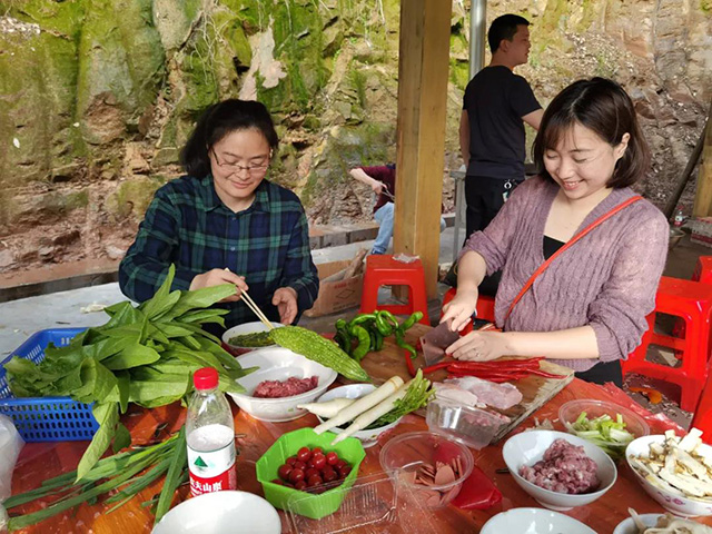 炊煙裊裊,香味四溢,不一會(huì)兒功夫,一道道鮮美可口的菜肴上桌了,在歡聲笑語中,大家品嘗著自己的勞動(dòng)成果,感受著活動(dòng)帶來的快樂。