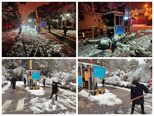 城區(qū)各公共停車場(chǎng)也連夜打響清雪大會(huì)戰(zhàn)。鴻達(dá)公司會(huì)同應(yīng)急救援隊(duì),聯(lián)合物業(yè)人員清理公共停車場(chǎng)出入口積雪,消除安全隱患。
