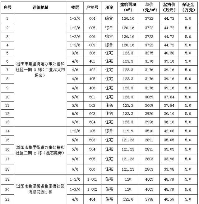 受湖南省瀏陽市恒遠(yuǎn)建設(shè)開發(fā)有限公司委托,根據(jù)國有資產(chǎn)管理的相關(guān)規(guī)定,我公司定于2021年12月17日上午10:00在瀏陽市城鄉(xiāng)發(fā)展集團(tuán)有限責(zé)任公司8樓會議室(人民東路60號),對位于禧和社區(qū)一期、禧和社區(qū)二期、海威花園1棟等35套安置房面向社會進(jìn)行公開拍賣,標(biāo)的情況見下表: