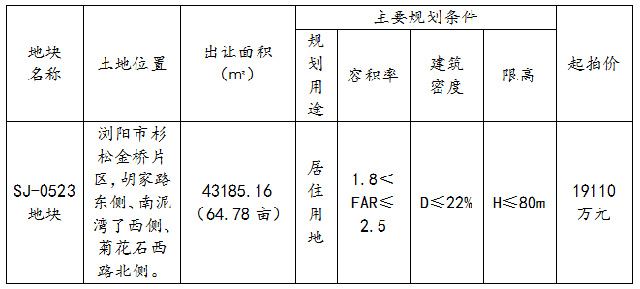 ※最終數(shù)據(jù)以瀏陽(yáng)市自然資源局批準(zhǔn)的規(guī)劃條件為準(zhǔn)。