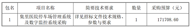 集里醫(yī)院停車場(chǎng)管理系統(tǒng)及數(shù)字監(jiān)控系統(tǒng)采購(gòu)