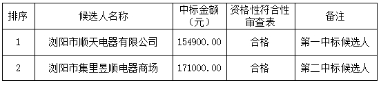 受瀏陽市水利建設(shè)投資有限公司的委托,湖南凱博項(xiàng)目管理有限公司對瀏陽市集里街道集里中學(xué)至善公租房項(xiàng)目電器采購進(jìn)行公開招標(biāo)采購,現(xiàn)將采購結(jié)果公告如下: