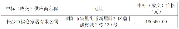 受瀏陽市水利建設(shè)投資有限公司的委托,湖南凱博項(xiàng)目管理有限公司對(duì)瀏陽市荷花街道荷韻公租房項(xiàng)目家具采購進(jìn)行公開招標(biāo)采購,現(xiàn)將采購結(jié)果公告如下: