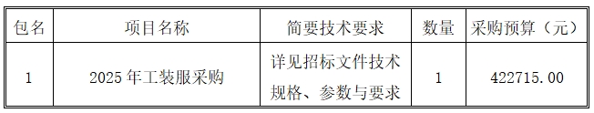 一、采購項目名稱:2025年工裝服采購